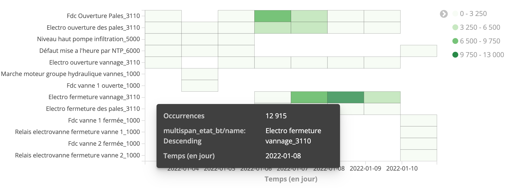 Le comptage de l’apparition des différents états a permis de détecter des reprises de fuite sur la vanne de garde d’une usine.